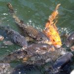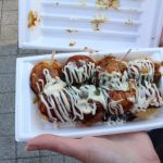A peine posés depuis quelques minutes, une annonce est faite à 17h00, informant de la fermeture imminente du château. Nous redescendons donc en direction de la gare. Avant de reprendre le train direction Kyoto, nous nous arrêtons à un stand de Takoyaki (sorte de beignet de poulpe), puis à une boutique de gauffres belges (la chaîne s’appelle Manneken! Oui comme le Manneken Pis, avec pour logo la petite statue bien connue).
