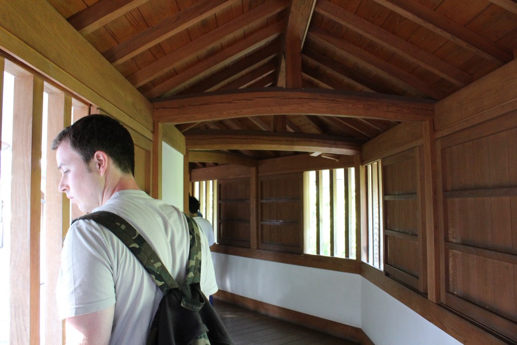 Nous pourrons tout de même effectuer le tour complet, visiter l’intérieur des tours et des murs de l’enceinte Ouest, et nous rapprocher suffisamment près du château. L’enceinte Ouest, appelée Hyakken Roka, a été transformée en musée, et est constitué d’une vingtaine de pièces, reliés par plusieurs couloirs, sur trois étages. Après avoir traversé l’enceinte, nous nous dirigeons vers le sommet du mont où se trouve le château. Nous arrivons à nous approcher suffisamment jusqu’à être juste en dessous du château.