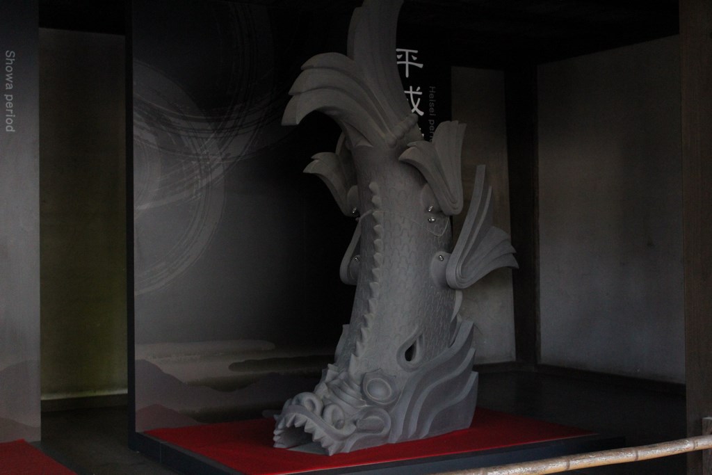 Pour ne rien changer aux us et coutumes japonaises, il est obligatoire de se déchausser pour visiter le château. Malheureusement, les appareils photos et les caméras étant interdits dans l’enceinte, nous ne pourrons donc pas vous en faire profiter. La visite s’est étalée sur une bonne heure, à longer des couloirs de parquets massifs, pour certains d’époque, pour d’autres restaurés, le plancher grinçant sous les pas des centaines de visiteurs.