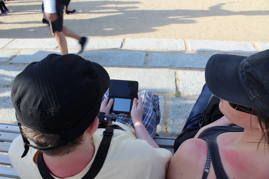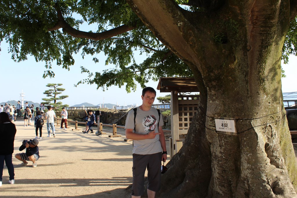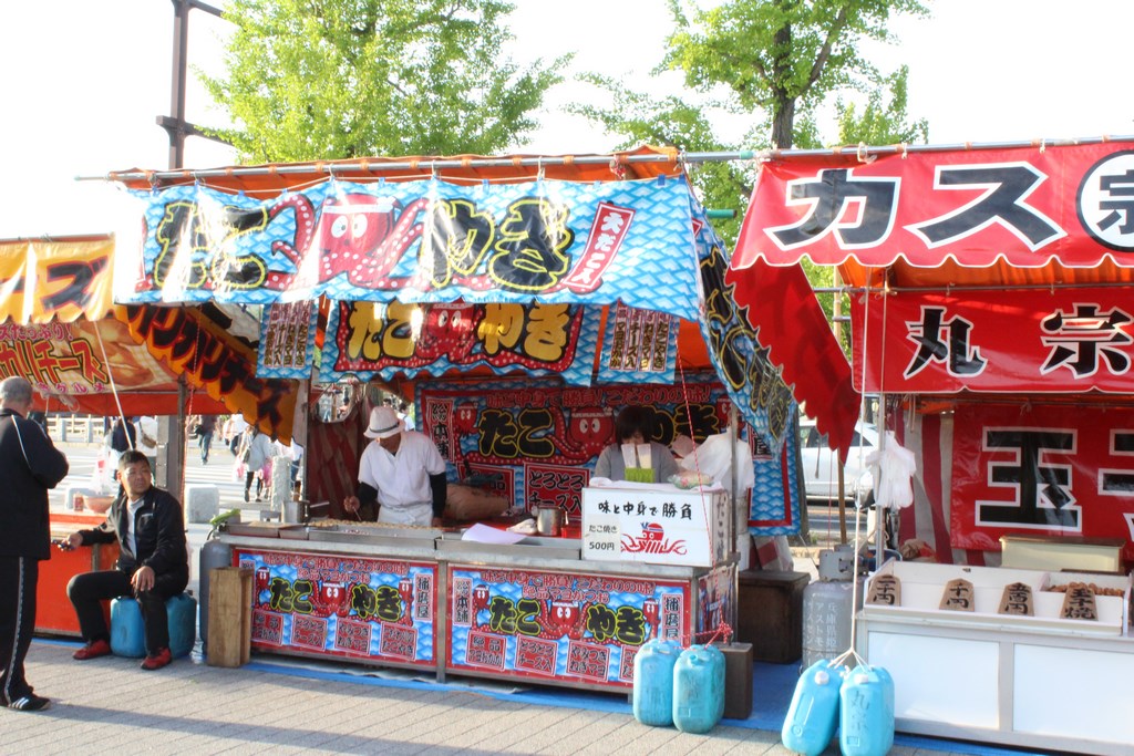 A peine posés depuis quelques minutes, une annonce est faite à 17h00, informant de la fermeture imminente du château. Nous redescendons donc en direction de la gare. Avant de reprendre le train direction Kyoto, nous nous arrêtons à un stand de Takoyaki (sorte de beignet de poulpe), puis à une boutique de gauffres belges (la chaîne s’appelle Manneken! Oui comme le Manneken Pis, avec pour logo la petite statue bien connue).