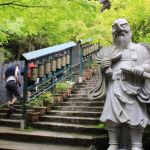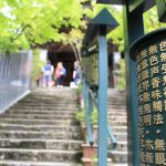 Le chemin que nous prenons pour débuter la randonnée passe par le temple Daishoin. Après avoir fait le tour des allées, nous prenons la direction du Mont Misen. Le chemin jusqu’au sommet est majoritairement composé d’escaliers. Avec la pluie de la veille, certaines marches sont glissantes, et il faut donc être vigilant, et prendre garde de ne les tomber. Autre raison d’être vigilant, plusieurs panneaux sont affichés, informant du danger des serpents. Pas très rassurant… Nous faisons donc attention où nous mettons les pieds, et ne nous éloignons jamais du sentier principal.