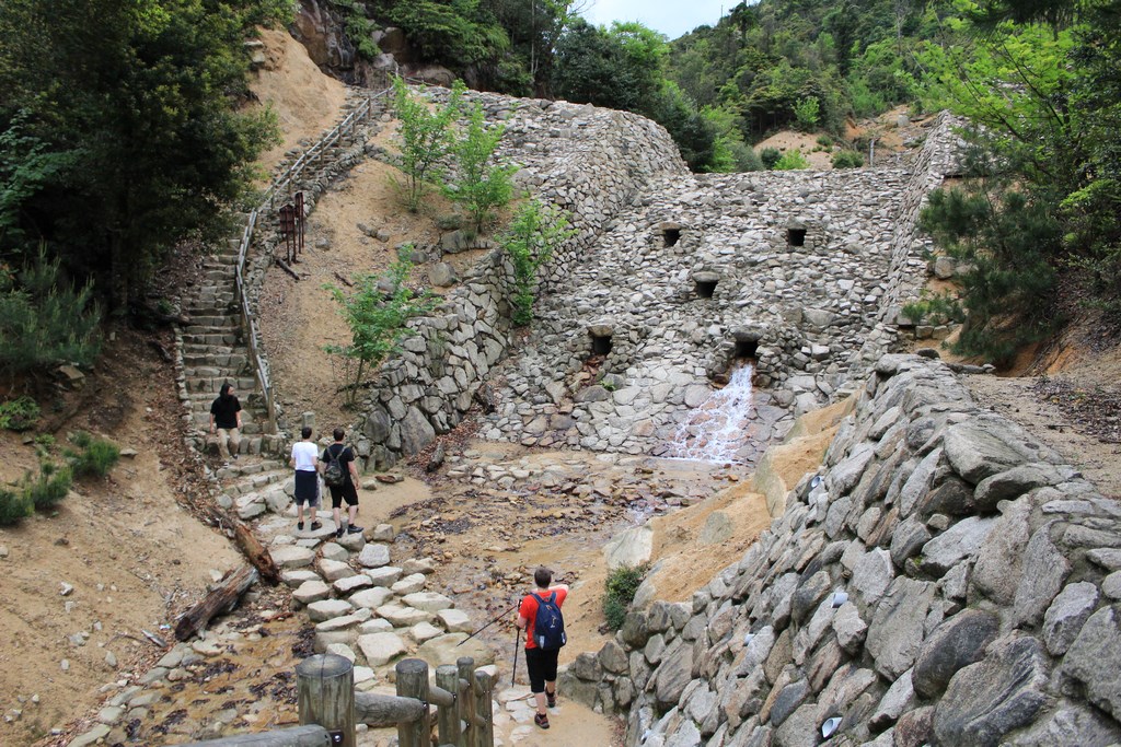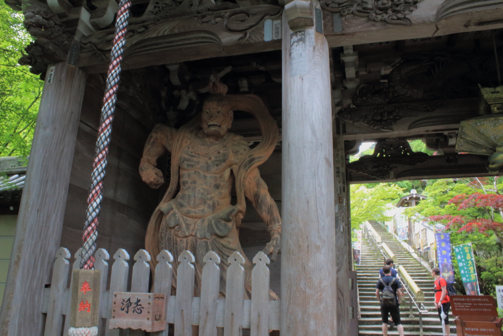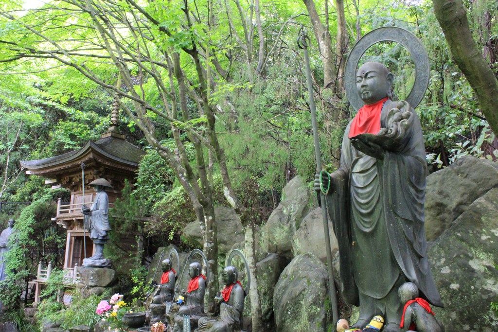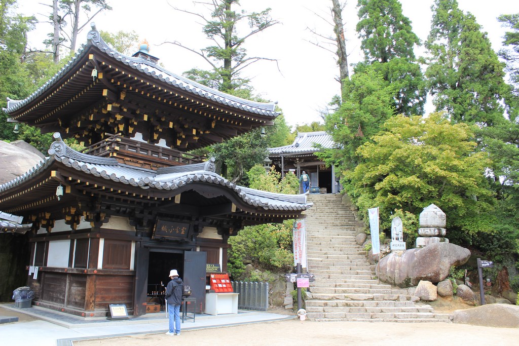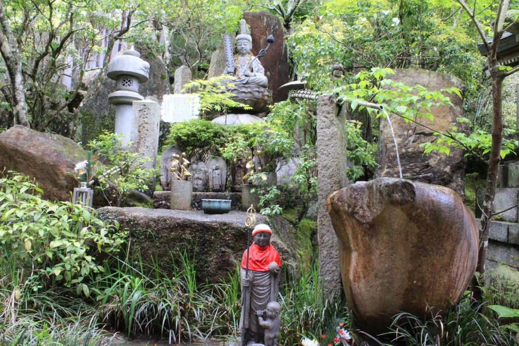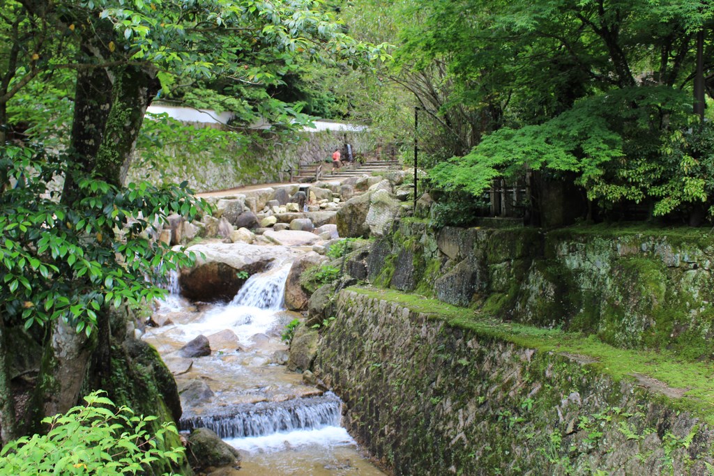 Le chemin que nous prenons pour débuter la randonnée passe par le temple Daishoin. Après avoir fait le tour des allées, nous prenons la direction du Mont Misen. Le chemin jusqu’au sommet est majoritairement composé d’escaliers. Avec la pluie de la veille, certaines marches sont glissantes, et il faut donc être vigilant, et prendre garde de ne les tomber. Autre raison d’être vigilant, plusieurs panneaux sont affichés, informant du danger des serpents. Pas très rassurant… Nous faisons donc attention où nous mettons les pieds, et ne nous éloignons jamais du sentier principal.