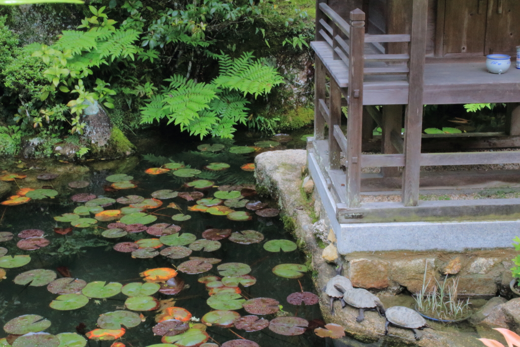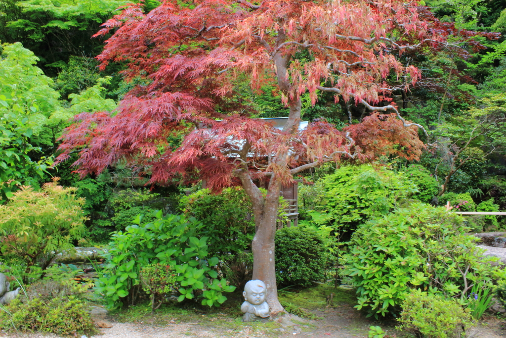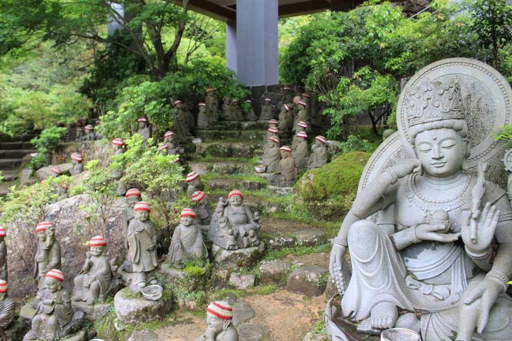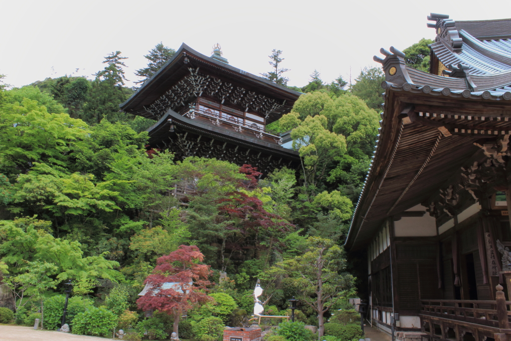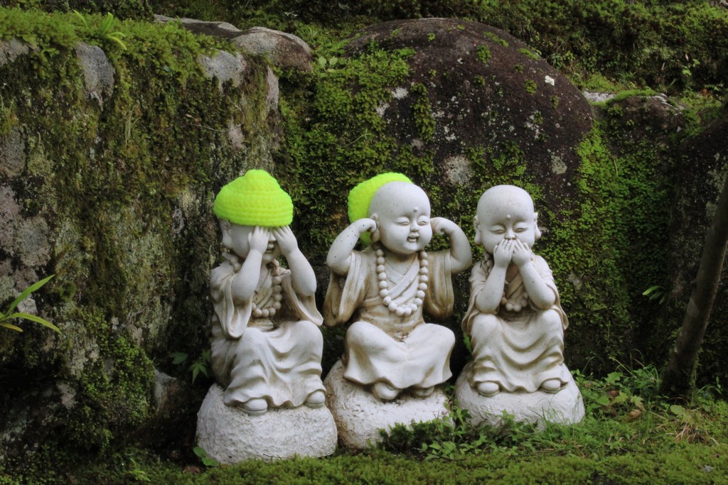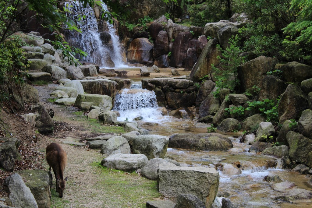 Le chemin que nous prenons pour débuter la randonnée passe par le temple Daishoin. Après avoir fait le tour des allées, nous prenons la direction du Mont Misen. Le chemin jusqu’au sommet est majoritairement composé d’escaliers. Avec la pluie de la veille, certaines marches sont glissantes, et il faut donc être vigilant, et prendre garde de ne les tomber. Autre raison d’être vigilant, plusieurs panneaux sont affichés, informant du danger des serpents. Pas très rassurant… Nous faisons donc attention où nous mettons les pieds, et ne nous éloignons jamais du sentier principal.