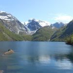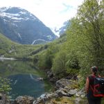 La randonnée n’est pas difficile, une dizaine de kilomètres au total pour 300 mètres de dénivelé. Les trois premiers kilomètres nous amènent au lac de Bondhusvanet situé à 190m d’altitude. Depuis le lac, nous voyons le glacier au loin, situé à environ 500m d’altitude. Les panneaux d’informations nous indiquent qu’il y a quelques dizaines d’années, le glacier se jetait encore dans le lac.