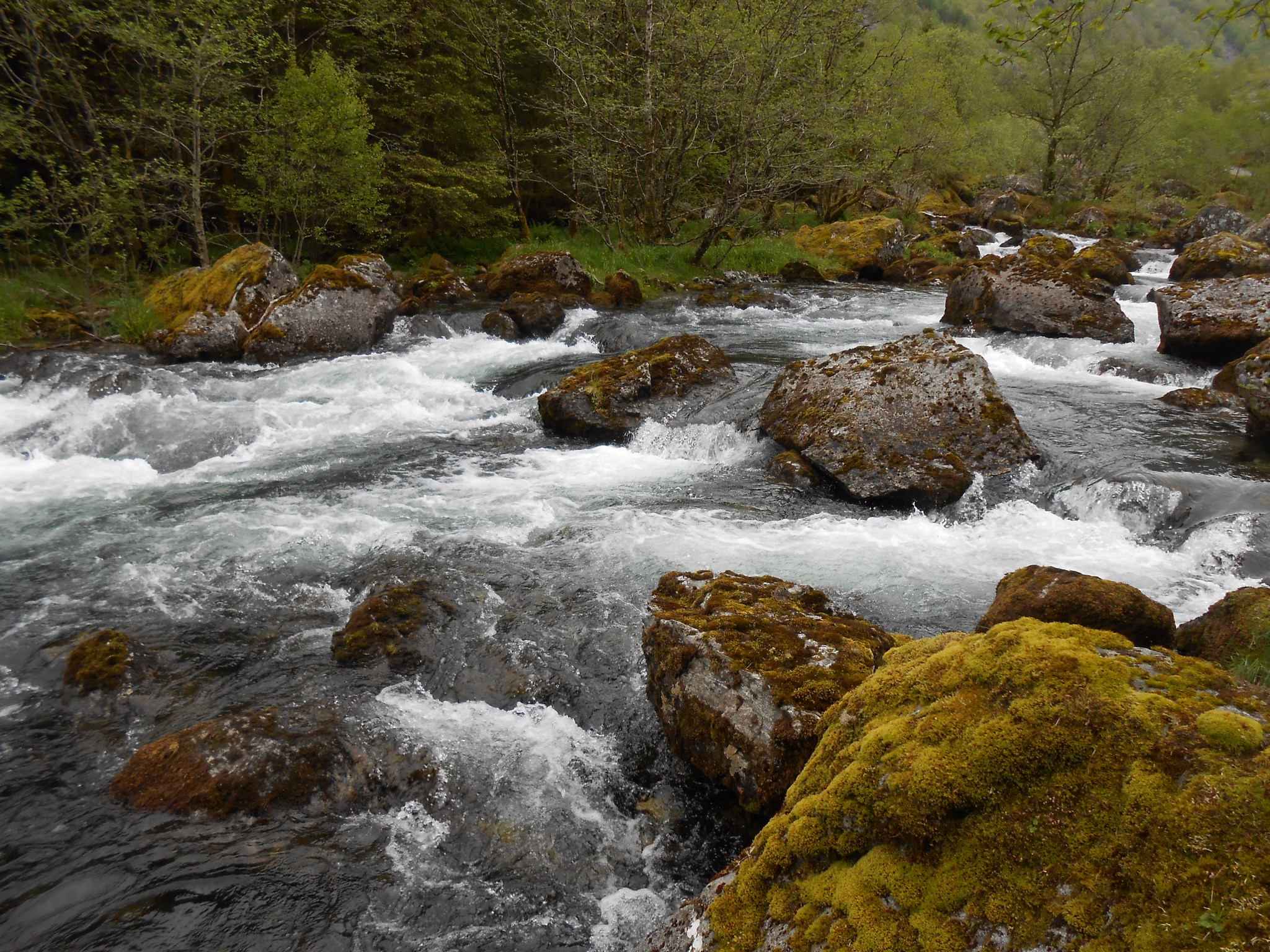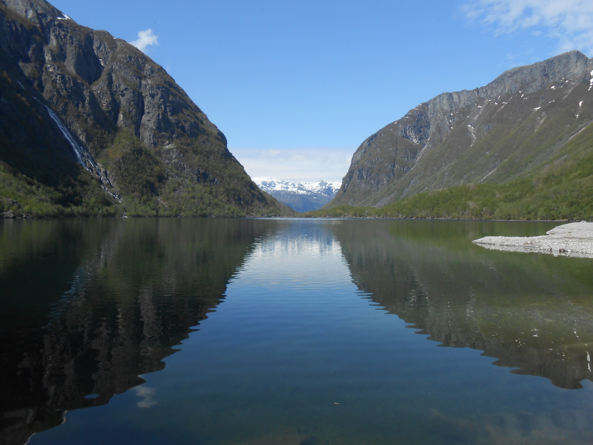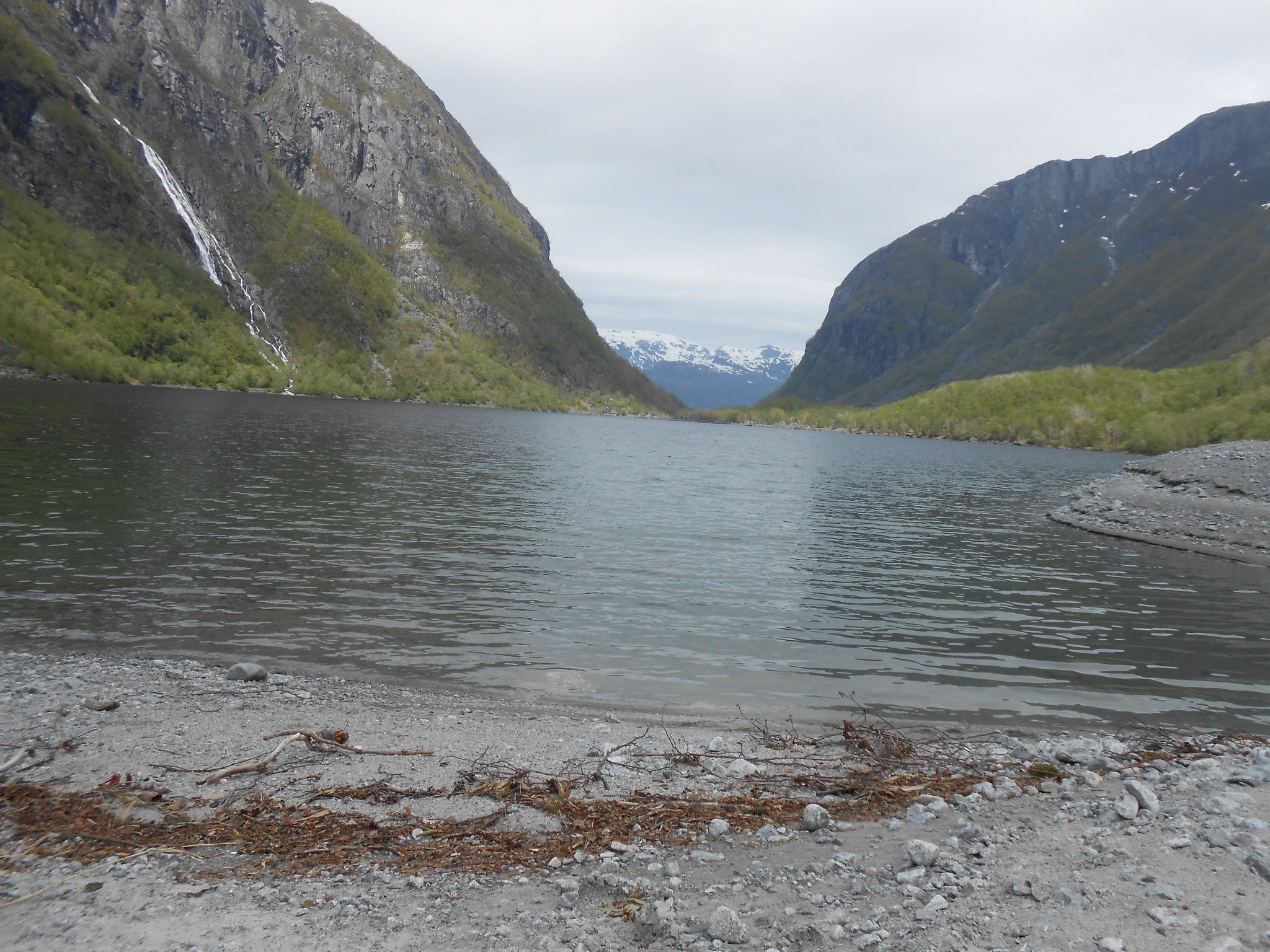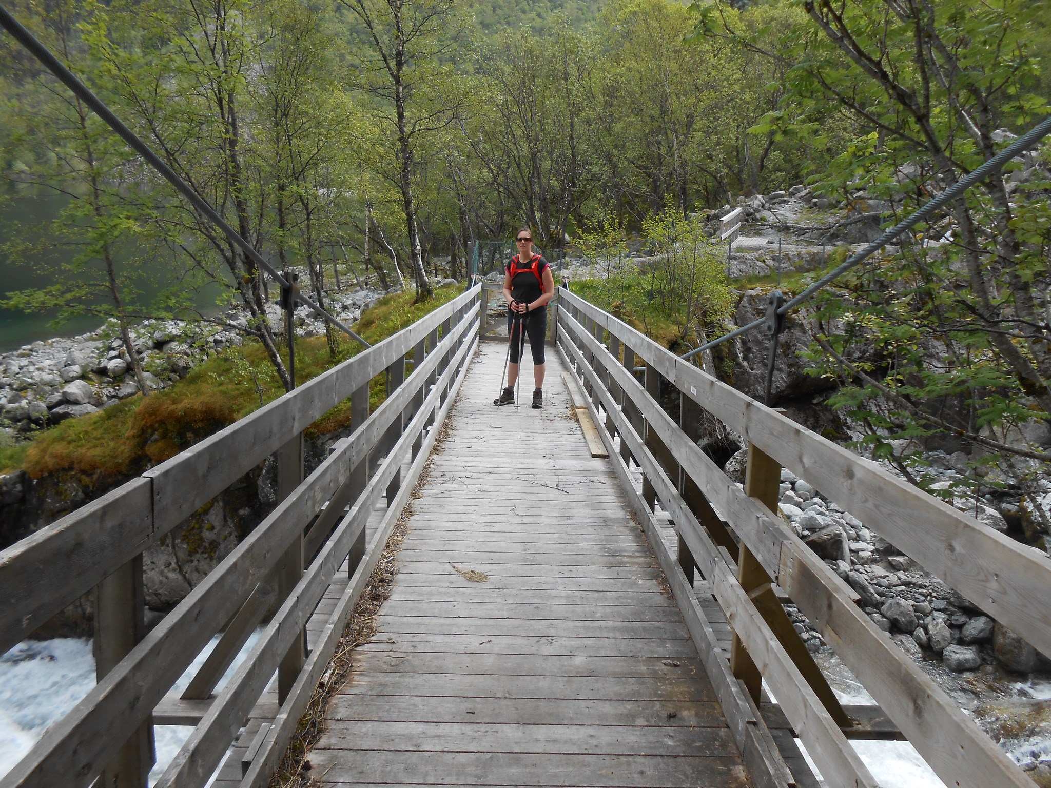 La randonnée n’est pas difficile, une dizaine de kilomètres au total pour 300 mètres de dénivelé. Les trois premiers kilomètres nous amènent au lac de Bondhusvanet situé à 190m d’altitude. Depuis le lac, nous voyons le glacier au loin, situé à environ 500m d’altitude. Les panneaux d’informations nous indiquent qu’il y a quelques dizaines d’années, le glacier se jetait encore dans le lac.