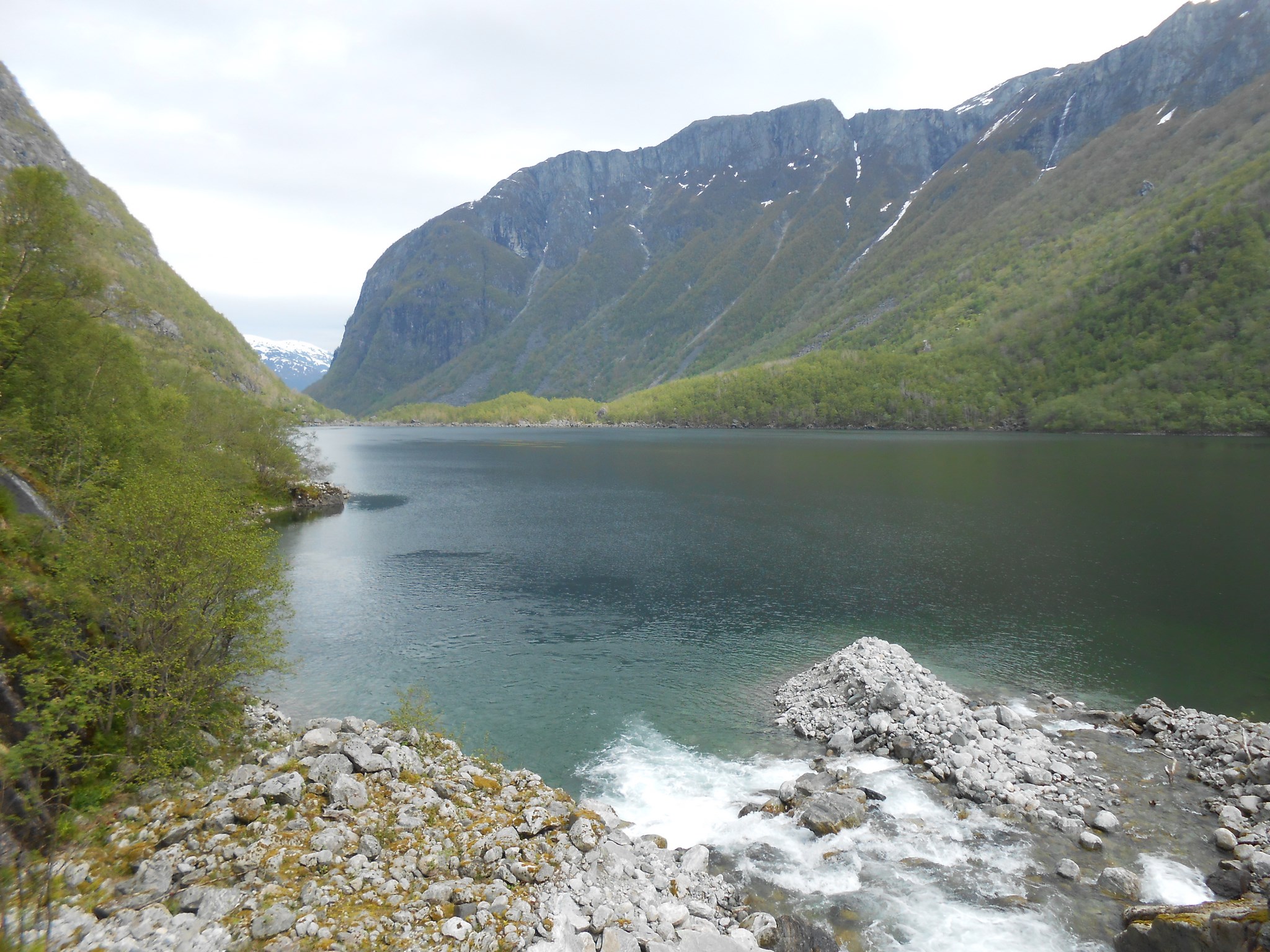 Nous longeons la rive droite du lac, pour arriver sur une petite plage, sur laquelle nous profitons du soleil pour pique-niquer.
