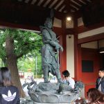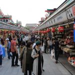Après avoir fait le tour du jardin, nous nous dirigeons vers le quartier d’Asakusa, quartier populaire de Tōkyō longeant la rivère Sumida. La rue principale ressemble plus au quartier Gion de Kyoto qu’au reste de Tōkyō, ce qui en fait un quartier charmant. L’allée menant au temple bouddhiste Sensō-ji, le plus vieux temple de Tōkyō, est rempli de commerces, un peu comme un marché de Noël chez nous, et certaines boutiques artisanales proposent des articles exceptionnels, un peu hors de notre budget.