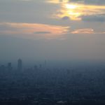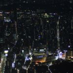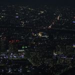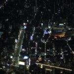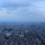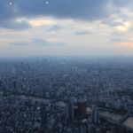 Nous entrons au rez-de-chaussée, et, après avoir payé notre ticket, sommes dirigés vers un ascenseur pour monter vers un premier palier à 350m. Avec sa vitesse d’ascension de 600 mètres par minute, nous y arrivons rapidement. De là, nous avons une vue imprenable sur tout Tōkyō. Le soleil est bas, et ne vas pas tarder à se coucher. Nous décidons de monter au deuxième palier, situé à 450m de haut, et d’attendre la tombée de la nuit pour profiter de la vue nocturne de Tōkyō.