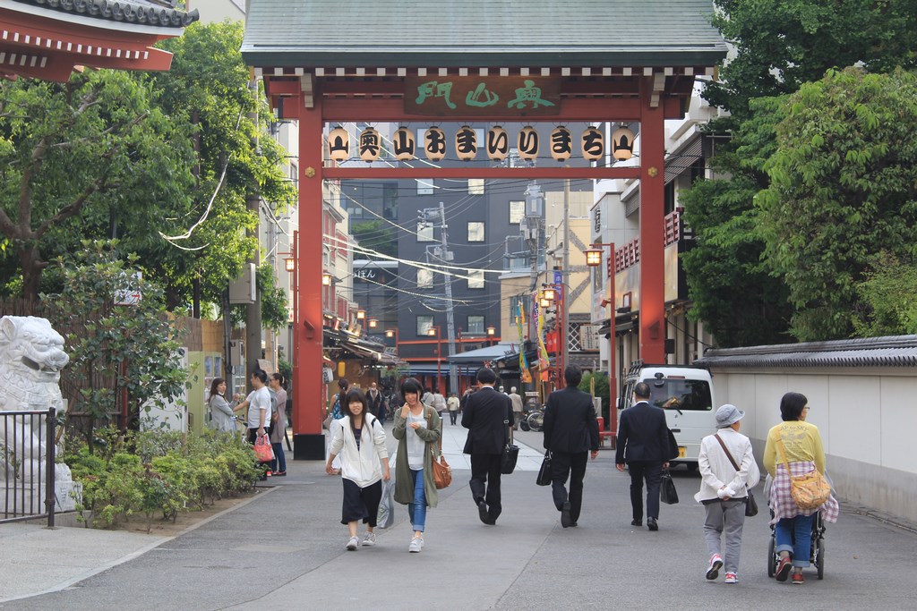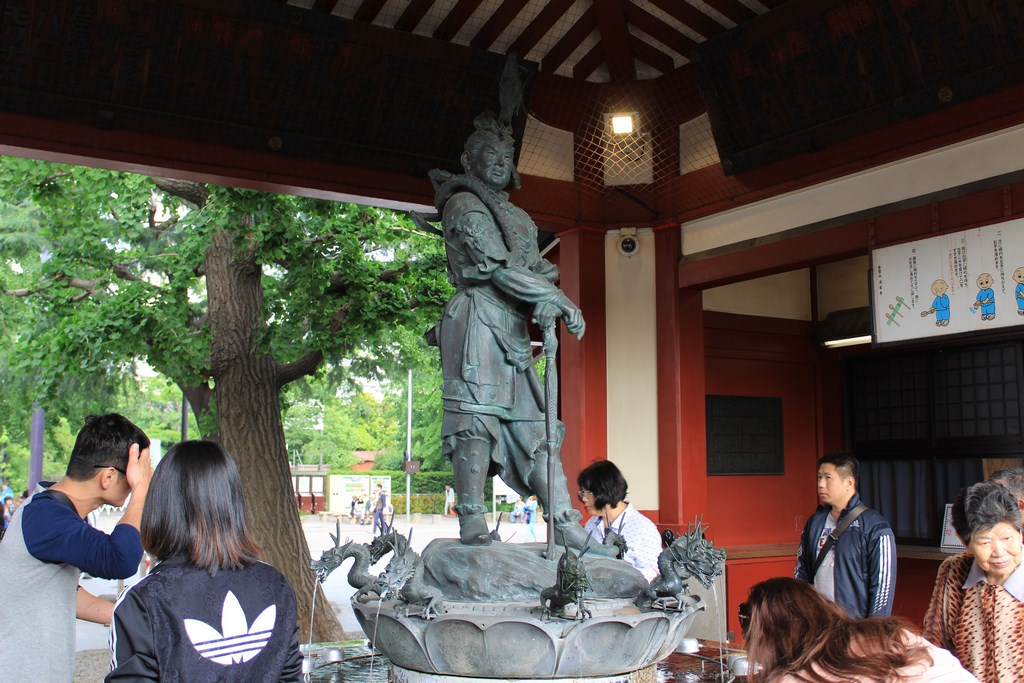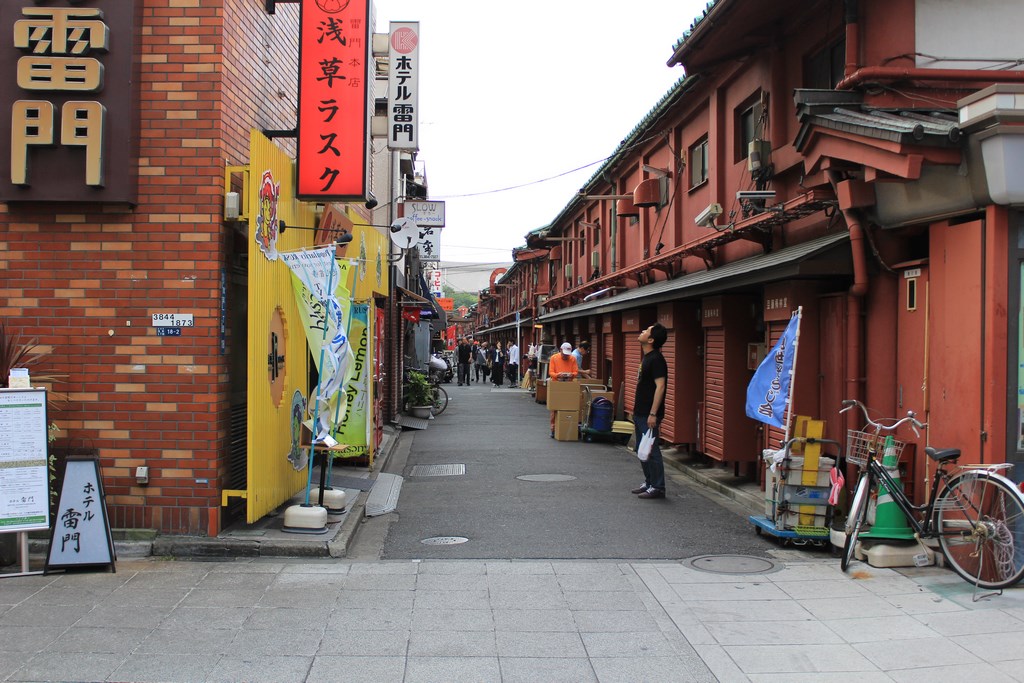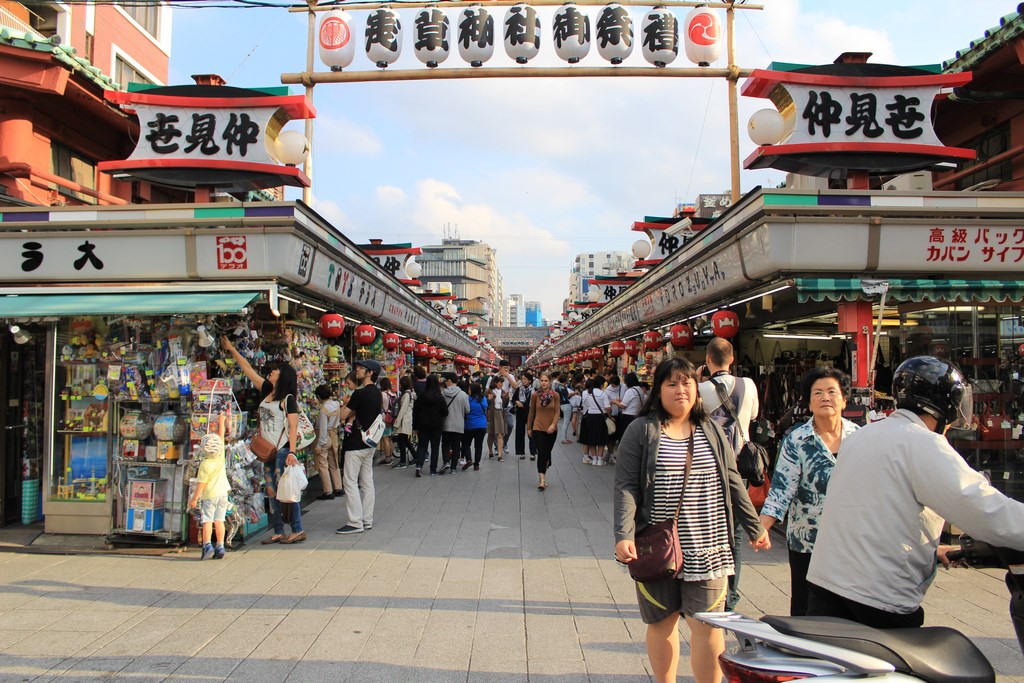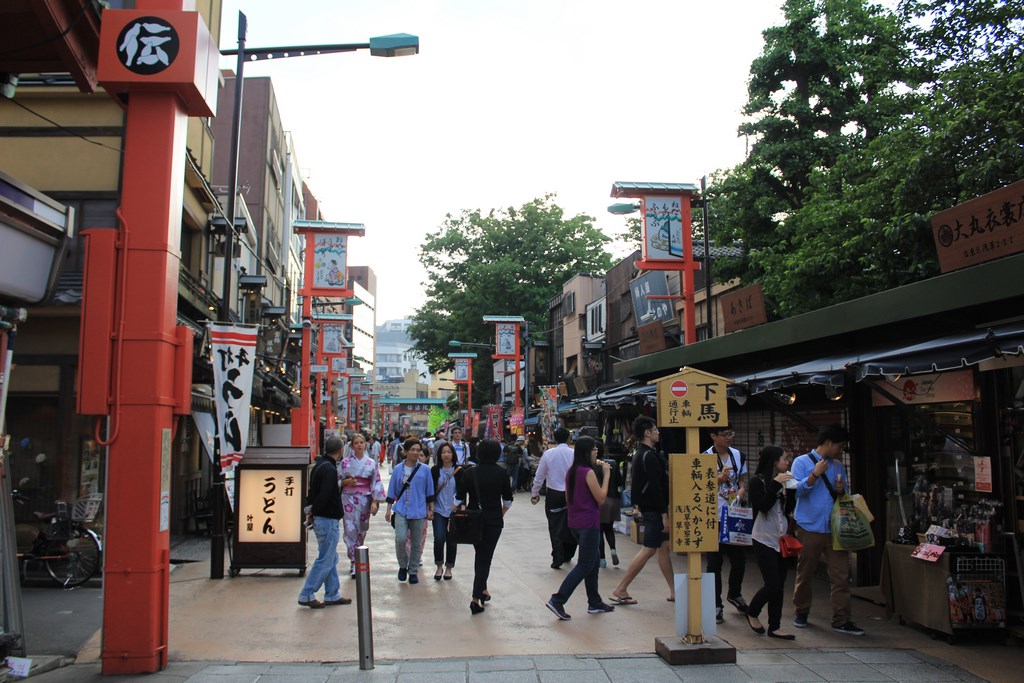 Après avoir fait le tour du jardin, nous nous dirigeons vers le quartier d’Asakusa, quartier populaire de Tōkyō longeant la rivère Sumida. La rue principale ressemble plus au quartier Gion de Kyoto qu’au reste de Tōkyō, ce qui en fait un quartier charmant. L’allée menant au temple bouddhiste Sensō-ji, le plus vieux temple de Tōkyō, est rempli de commerces, un peu comme un marché de Noël chez nous, et certaines boutiques artisanales proposent des articles exceptionnels, un peu hors de notre budget.