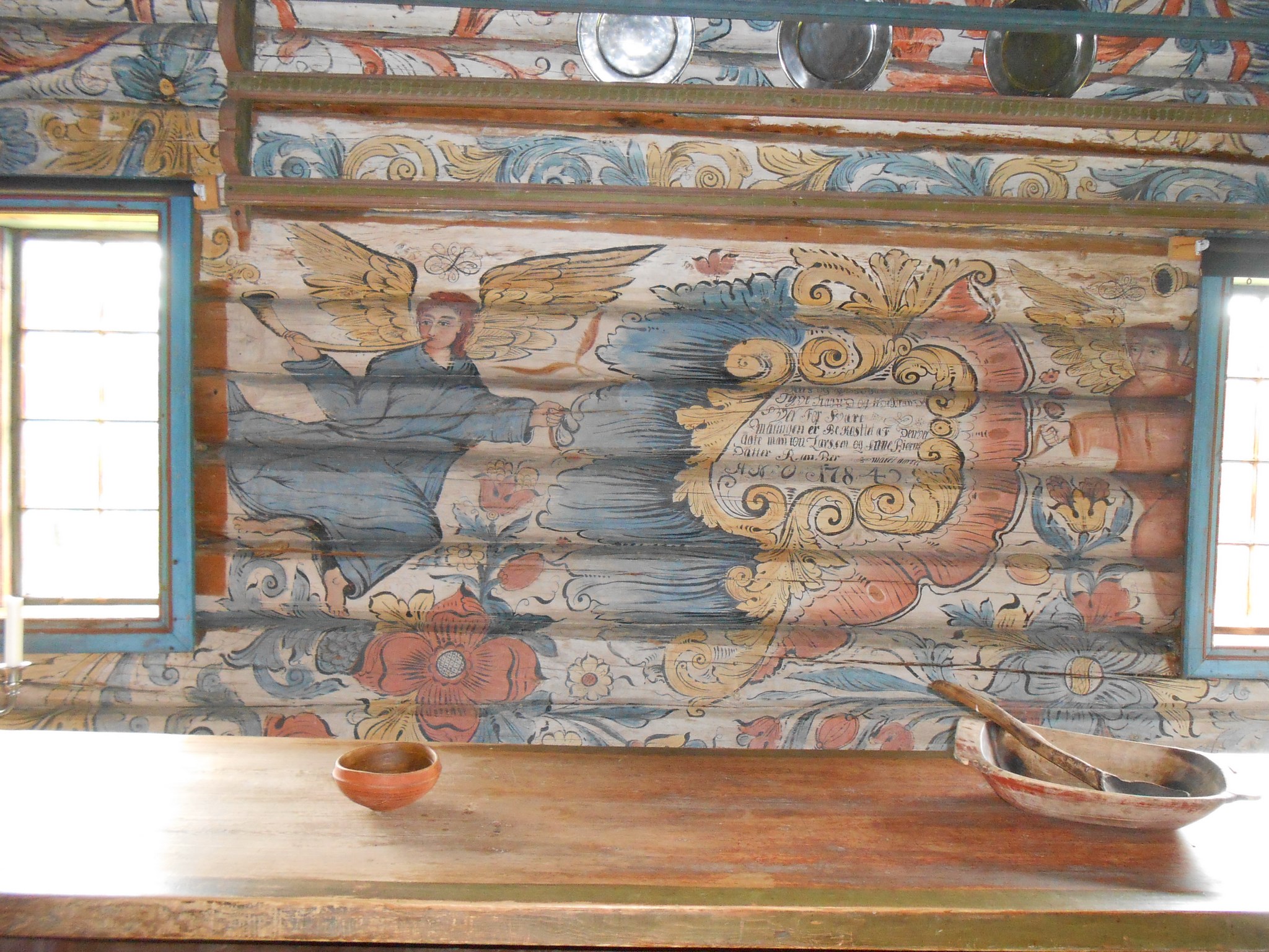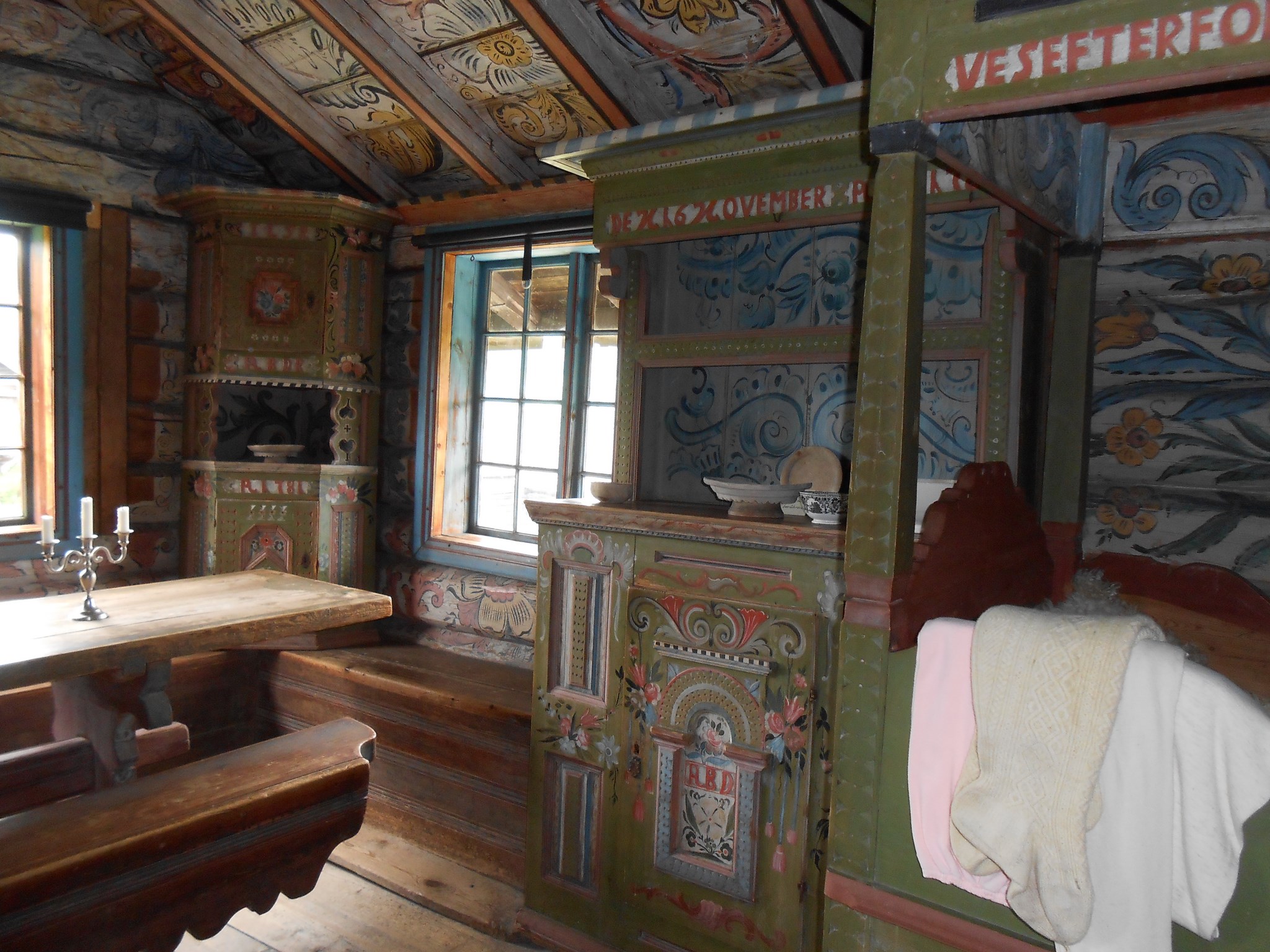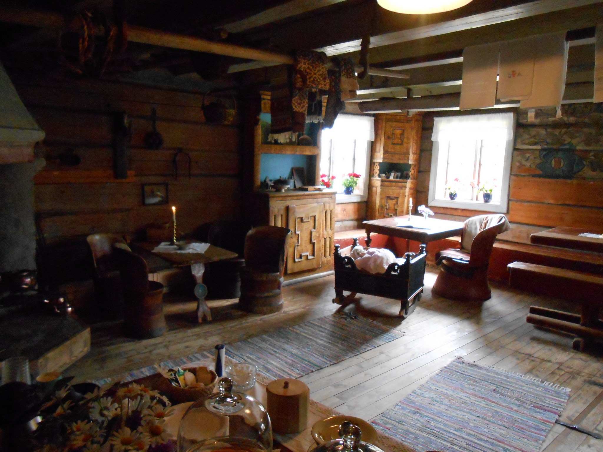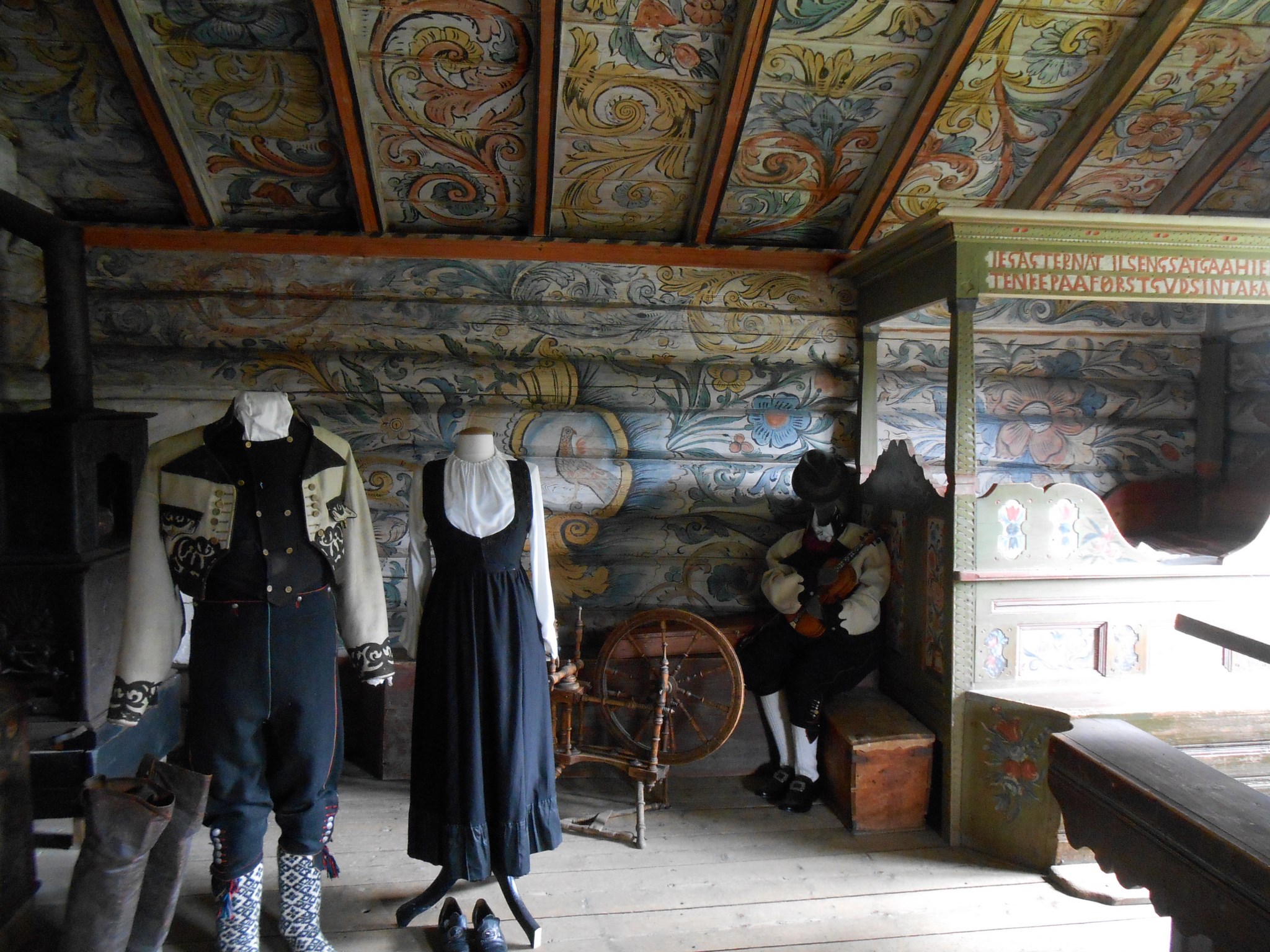 A côté, se trouve également une reconstitution d’un petit hameau, avec différentes cabanes de bois (ferme, greniers, étable) datant, pour les plus vieilles, du 17ème siècle. Nous en profitons pour en visiter quelques unes, sous les conseils d’une jeune guide vêtue des habits traditionnels de la région du Telemark.