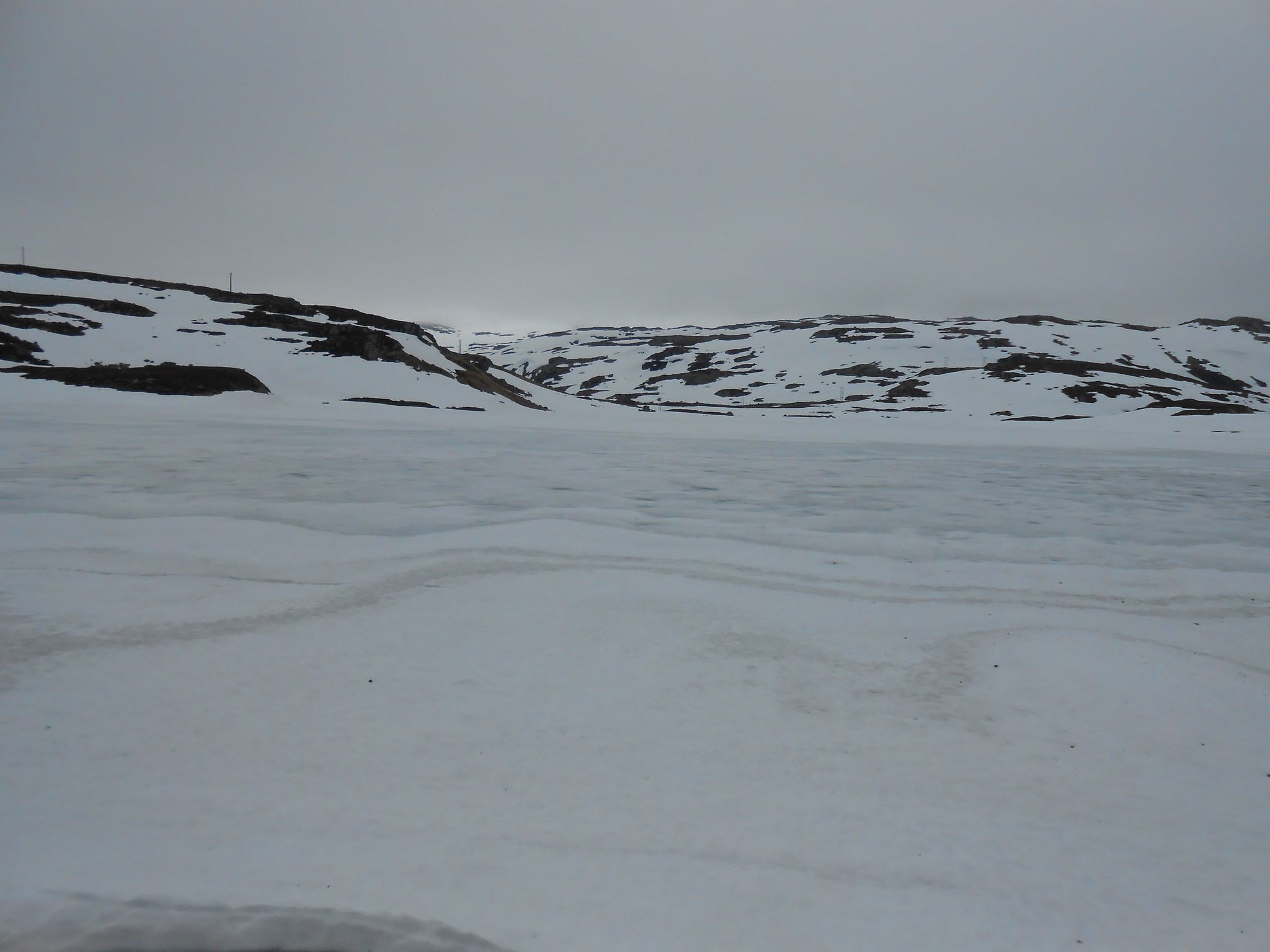 La route est longue, et nous nous retrouvons sur la même route que notre premier jour en Norvège, sur les plateaux montagneux à 1000m d’altitude, cernés à gauche et à droite par des murs de neige. Nous sommes moins impressionnés qu’à notre arrivée, mais pas moins prudents, car la route n’est pas large, et qu’il y a beaucoup de voitures en face.