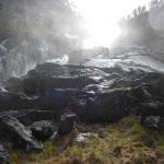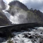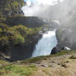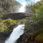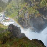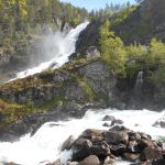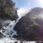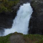 Sur la route se trouve la cascade de Låtefossen. Un sentier a été aménagé pour profiter de la cascade de plus près. Sortez les K-Way, ça va mouiller…