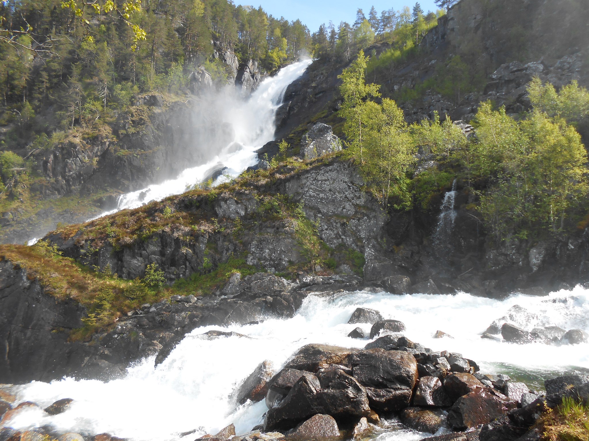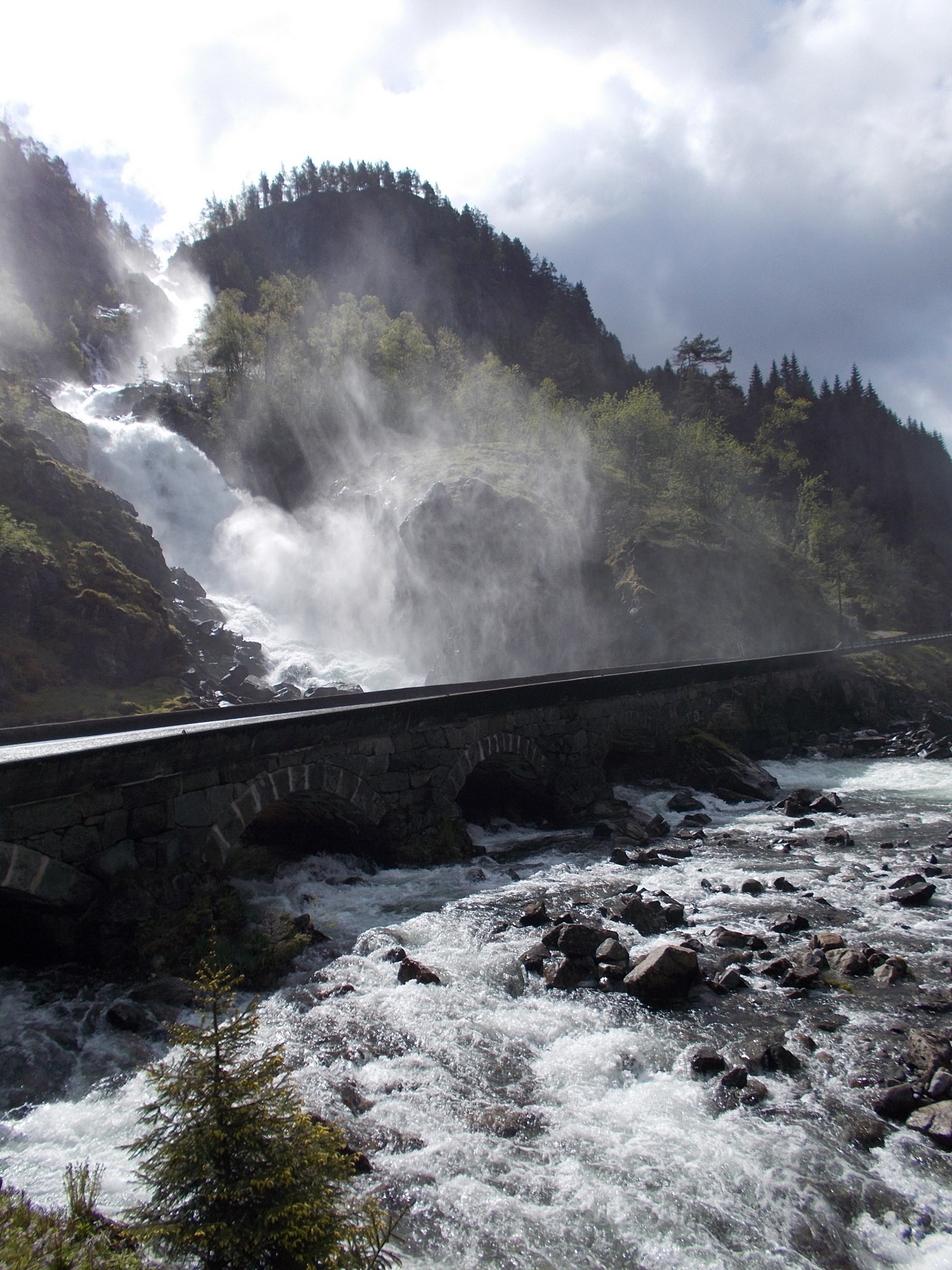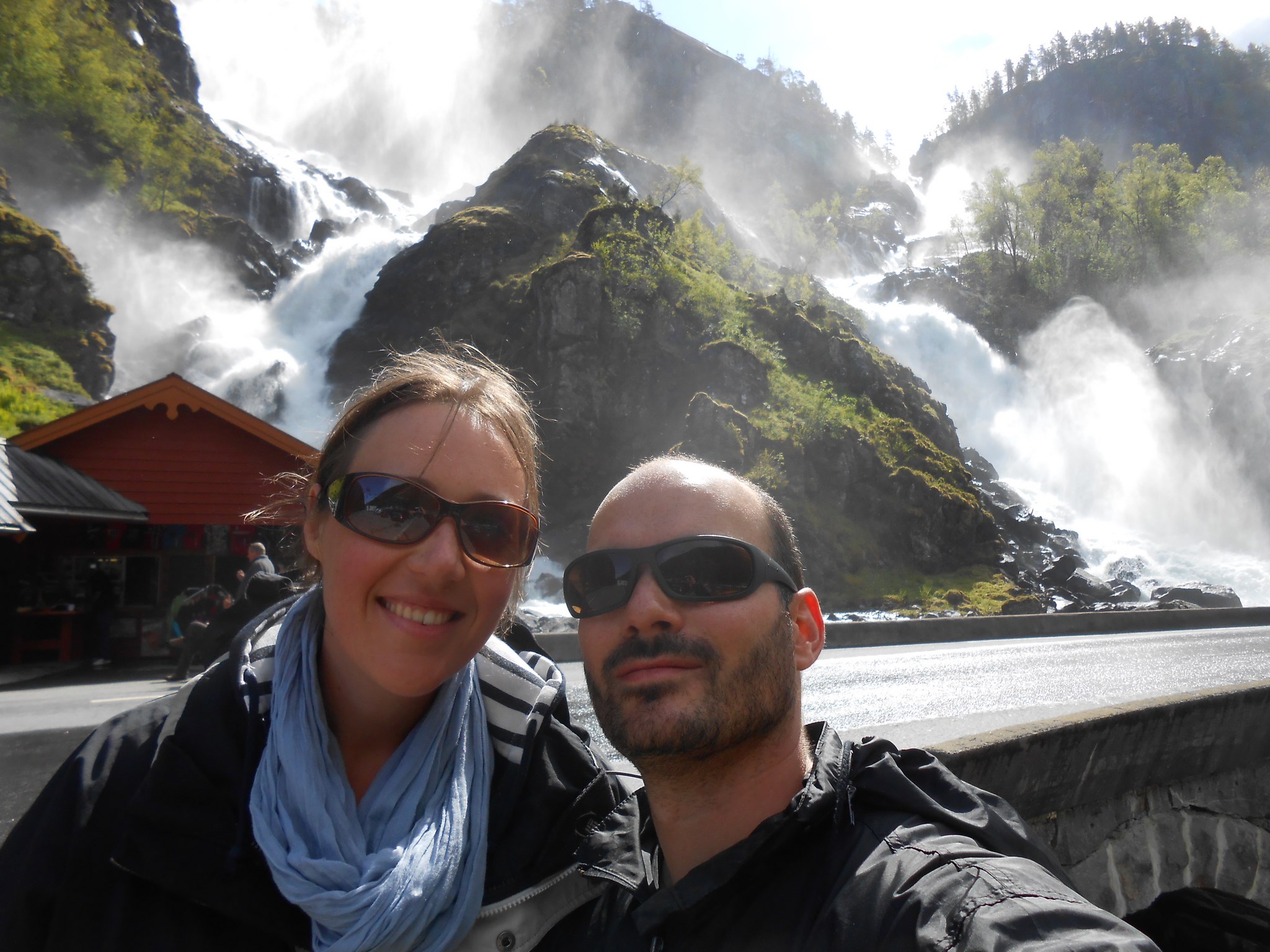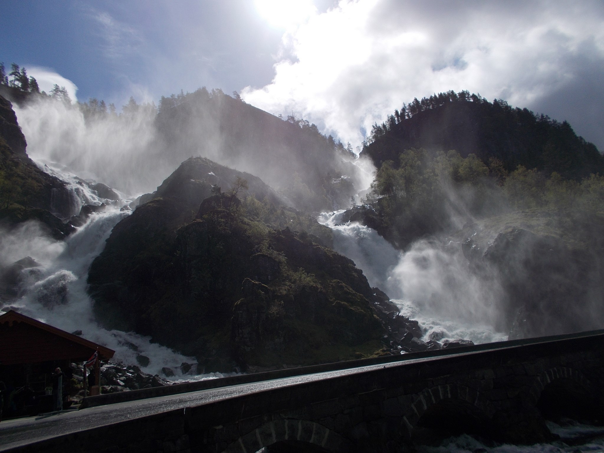 Sur la route se trouve la cascade de Låtefossen. Un sentier a été aménagé pour profiter de la cascade de plus près. Sortez les K-Way, ça va mouiller…