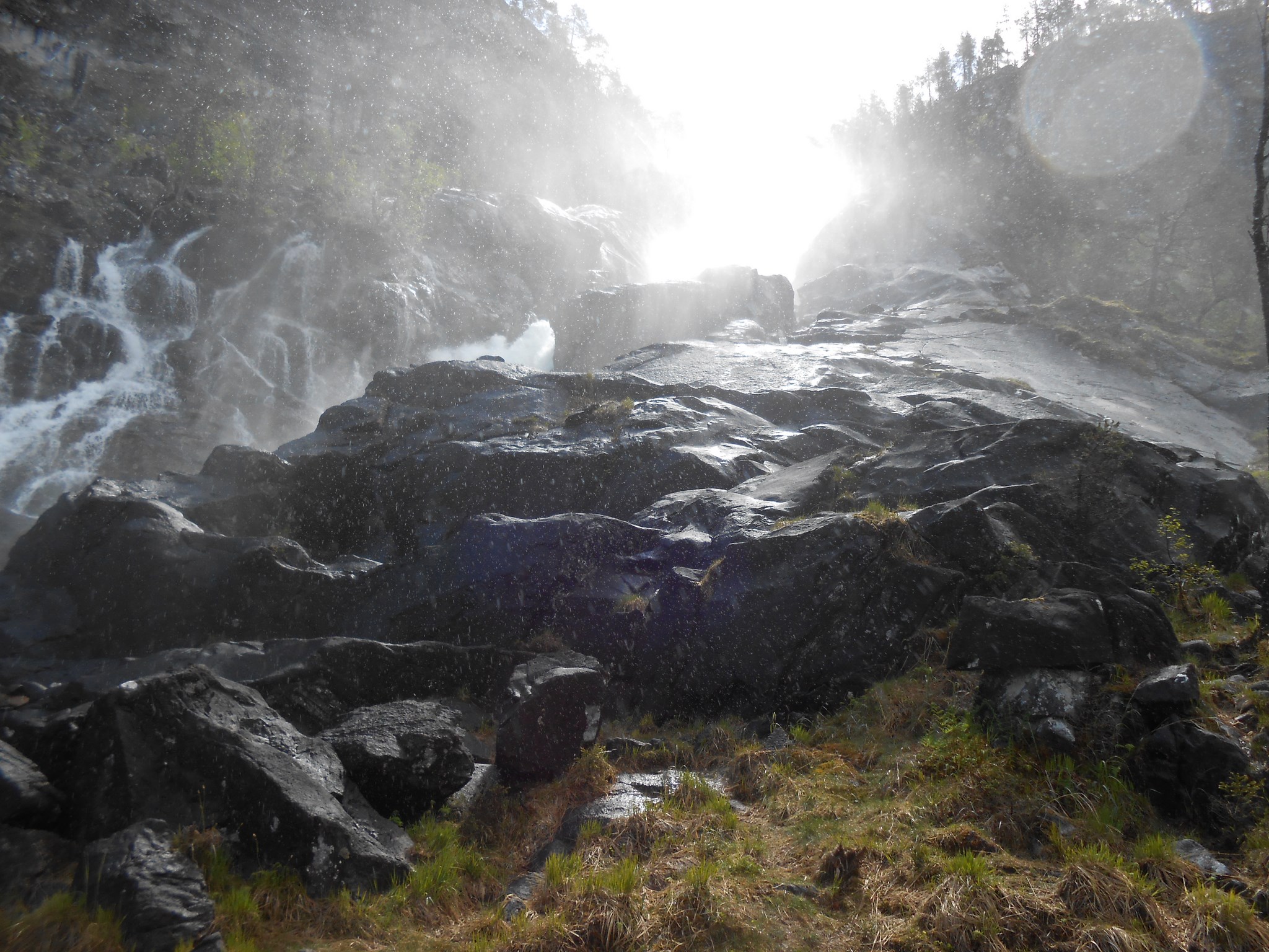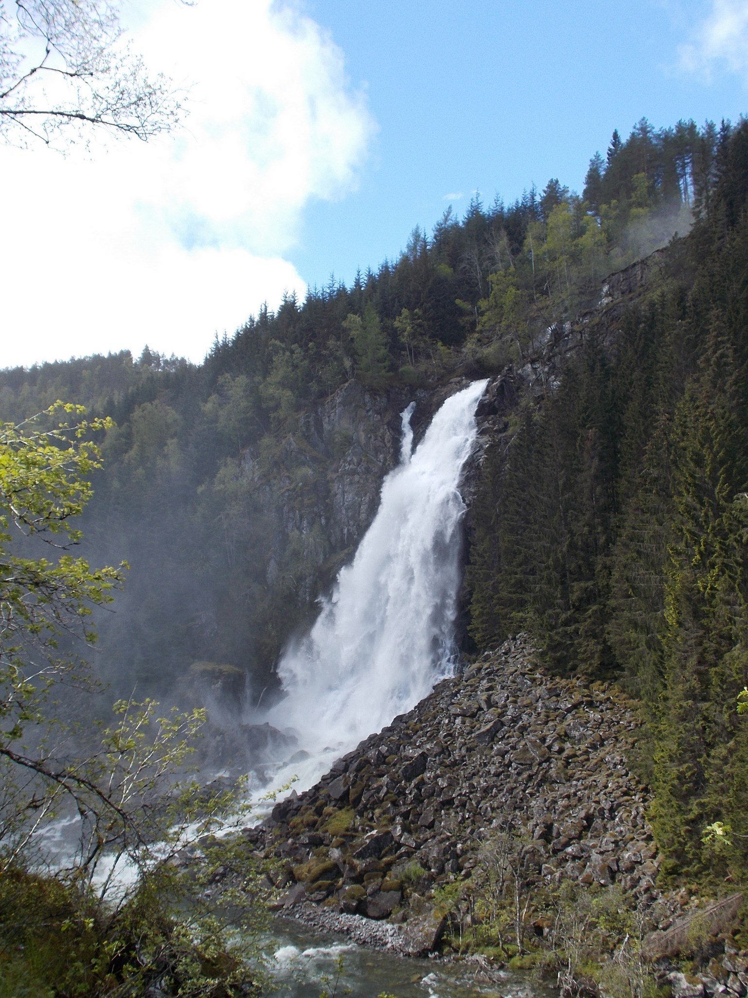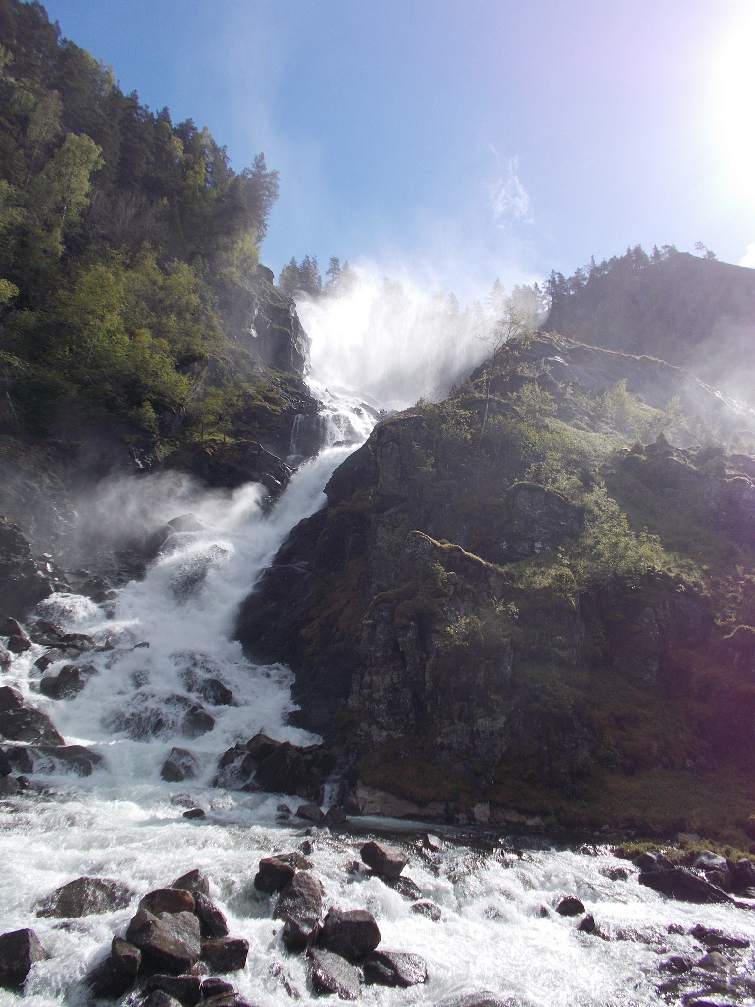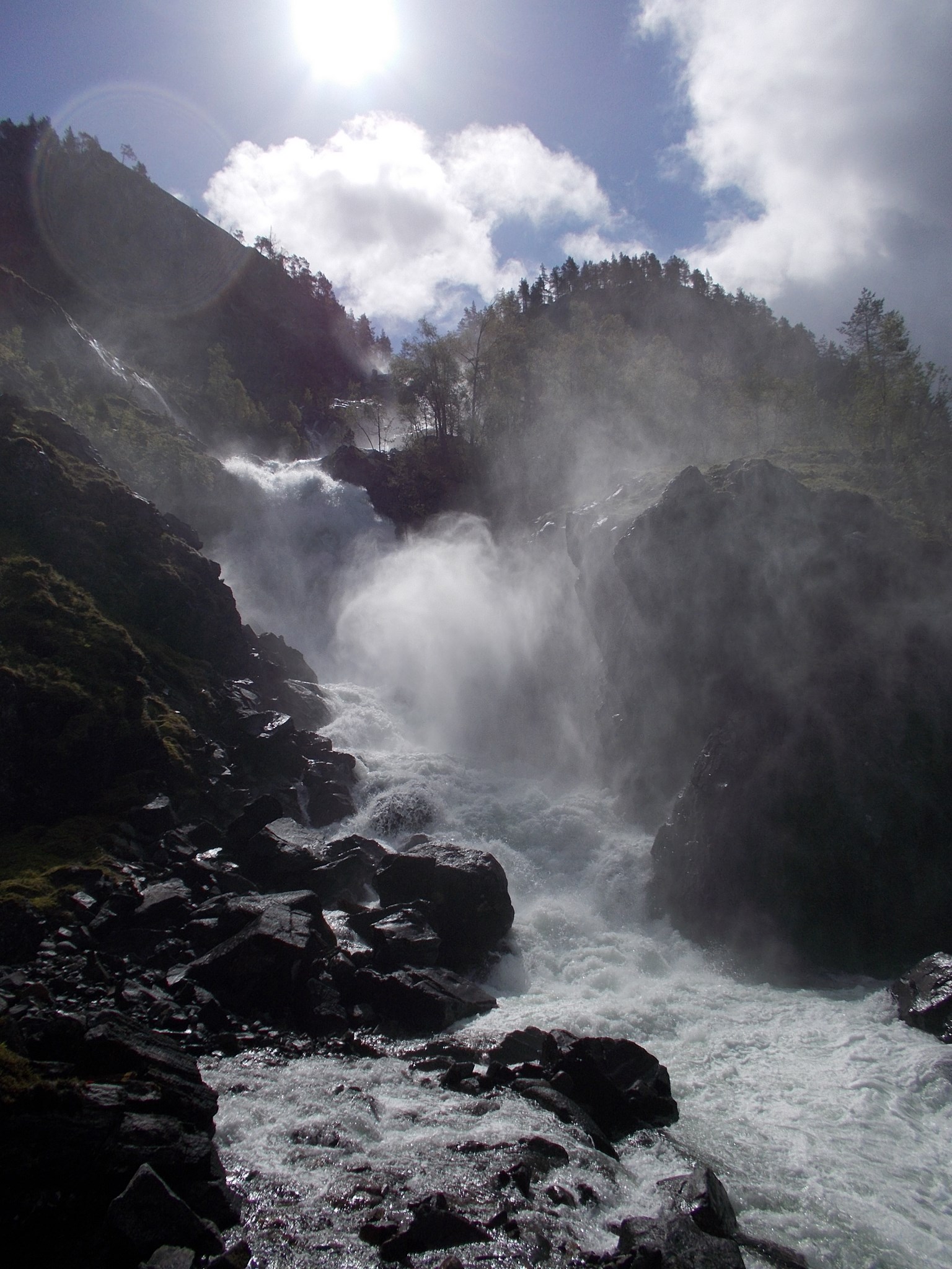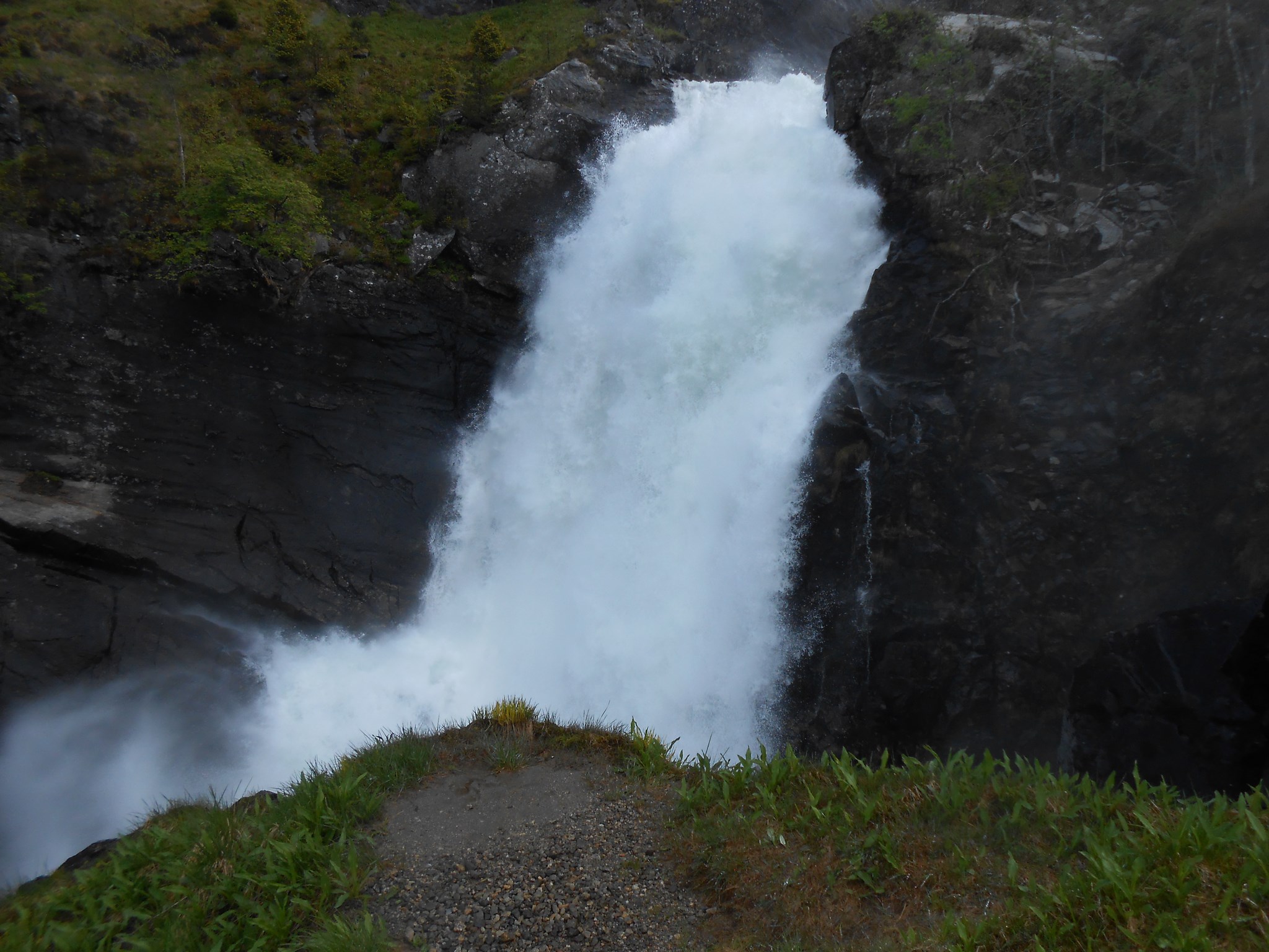 Sur la route se trouve la cascade de Låtefossen. Un sentier a été aménagé pour profiter de la cascade de plus près. Sortez les K-Way, ça va mouiller…